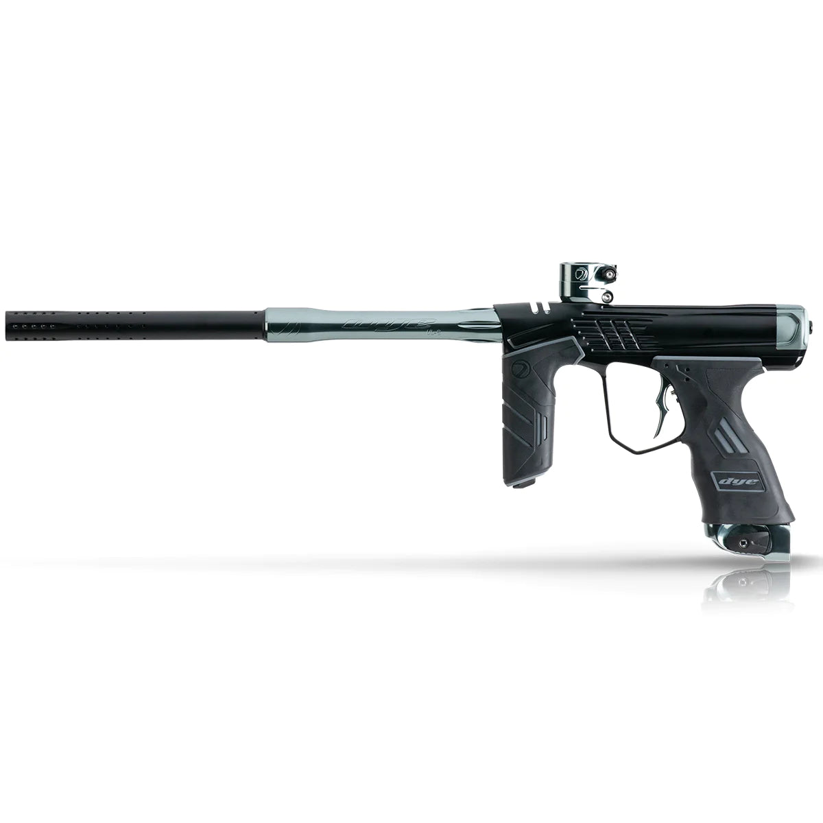The M3+ is Performance Elevated. DYE's new M3+ with MOS Air is a superior performer in every way, combining new design and new advancements with tried-and-true features to deliver a marker ready to elevate your game to the next level. Based on the legendary DM series platform, the new M3+ has been designed and built with state-of-the-art technology, new innovative features and improved convenience. Confidence is built right in thanks to the all-new DYE Slide Lock Airport ASA, updated FL-21 Bolt System with all-new Flex Face Bolt Tip, refined 4th Generation Patented Eye Pipe System, new BWing21 Solenoid Housing, all-new BWing21 Mag-Reach Trigger Blade, all-new UL-I 3-Piece Barrel System + much more.