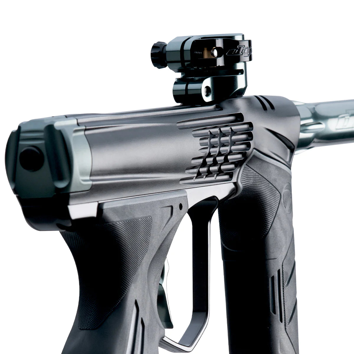 • DYE's patented Eye Pipe System moves into its 4th generation of refinement with updated breech geometry and independent detents designed to accommodate a wide range of paint sizes including extremely small paint. There are many important features of the Eye Pipe System. It shields the anti-chop eye system from dirt and broken paint. The thick durable polycarbonate pipe is wiped clean by the bolt tip o-ring on every cycle creating a self-cleaning operation that ensures the eyes are always monitoring the breech. Your marker stays protected from harsh environments eliminating permanent performance hindering breech wear. The new shape of the independent leaf spring detents are integrated into the Eye Pipe preventing double feeds and chopped paint, all while eliminating the need for bulky exterior eye plates.